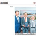 O presidente do Tribunal de Contas do Estado de Pernambuco, Valdecir Pascoal, recebe de Cláudio Sá Leitão o livro dos 35 anos da Sá Leitão, A Marca da Solução.